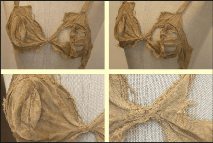 Es gibt auch mittelalterliche BHs. Mindestens vier Arten davon wurden 2012 von einer Gruppe Archäologen im Schloss Lengberg, Österreich, gefunden. Zwei von ihnen sahen aus wie Hemden mit Taschen ohne Körbchenstütze. Die dritte hatte im Grunde zwei „Brusttaschen“, die von der Schulter getragen wurdenTräger, und der letzte sah eher wie ein moderner Longline-BH aus, mit zwei Körbchen und dünneren Trägern.